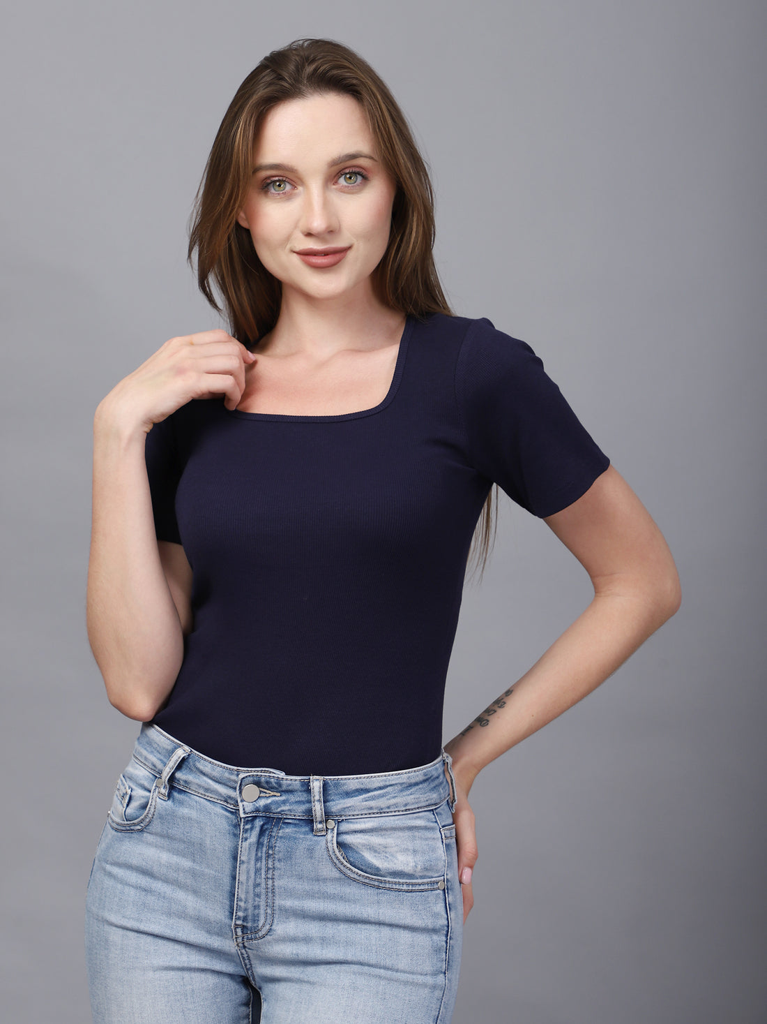 Structured, sleek, and effortlessly cool. This navy square neck bodysuit brings timeless design and modern...
