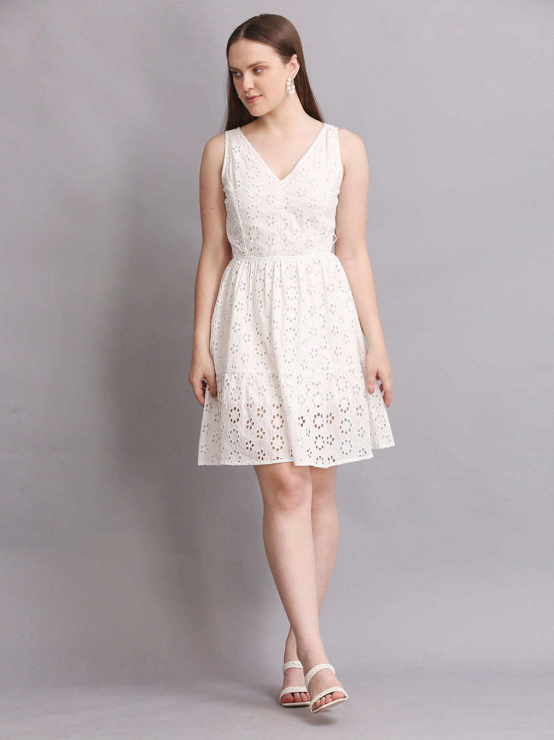 WHITE SCHIFFLI SIDE CUTOUT MINI DRESS