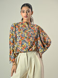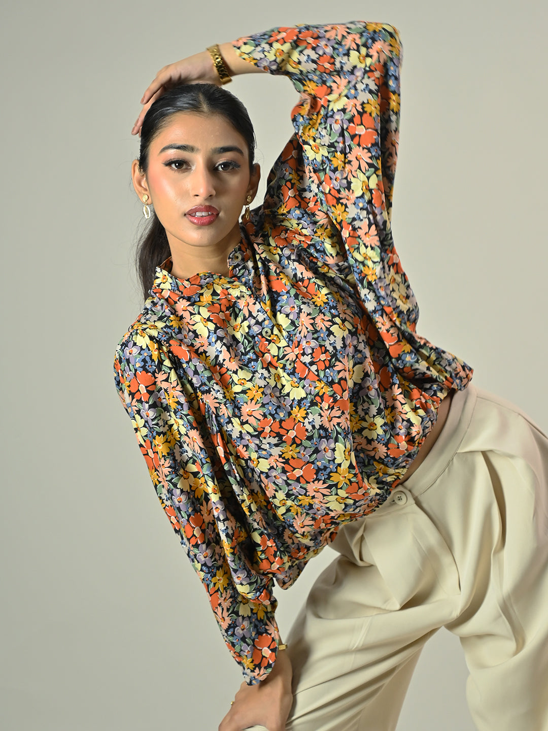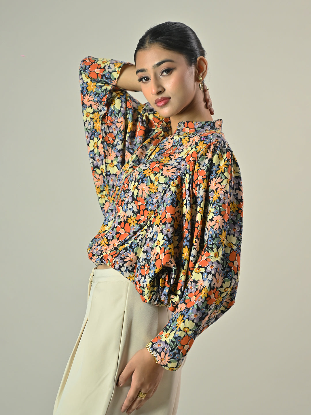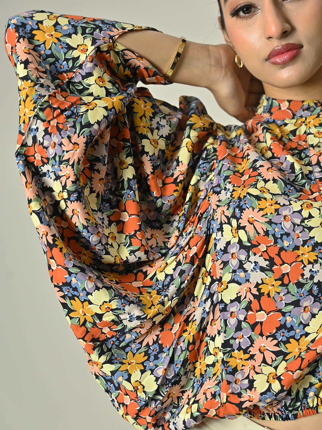 BLACK PRINTED BATWINGS SELEEVE TOP