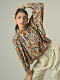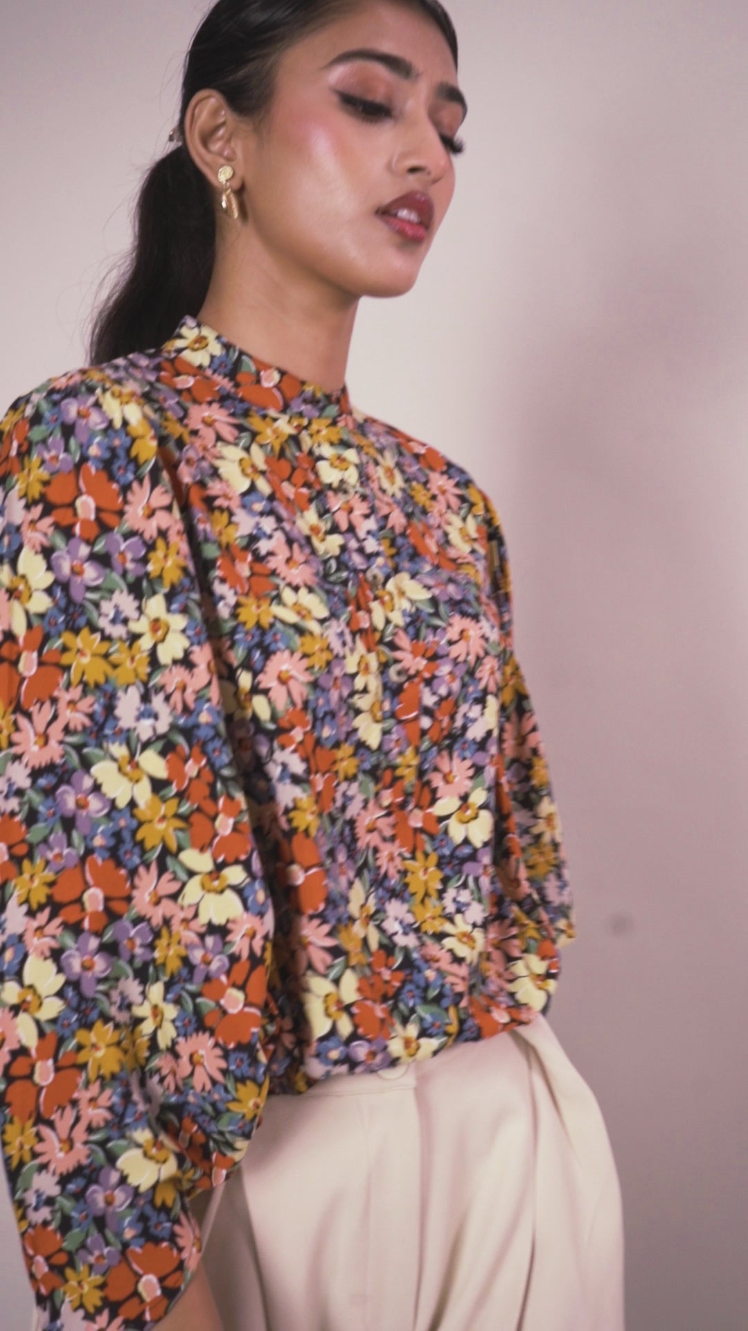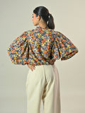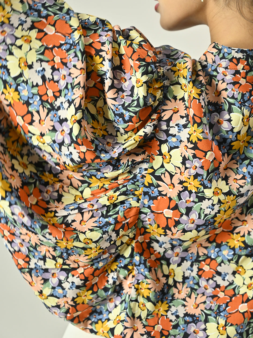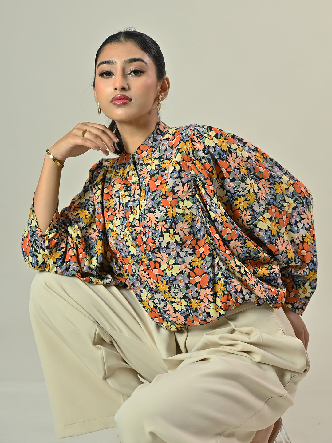 BLACK PRINTED BATWINGS SELEEVE TOP