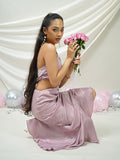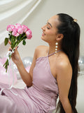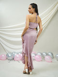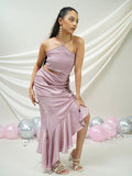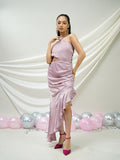 Blush Satin Draped Ruffled Dress