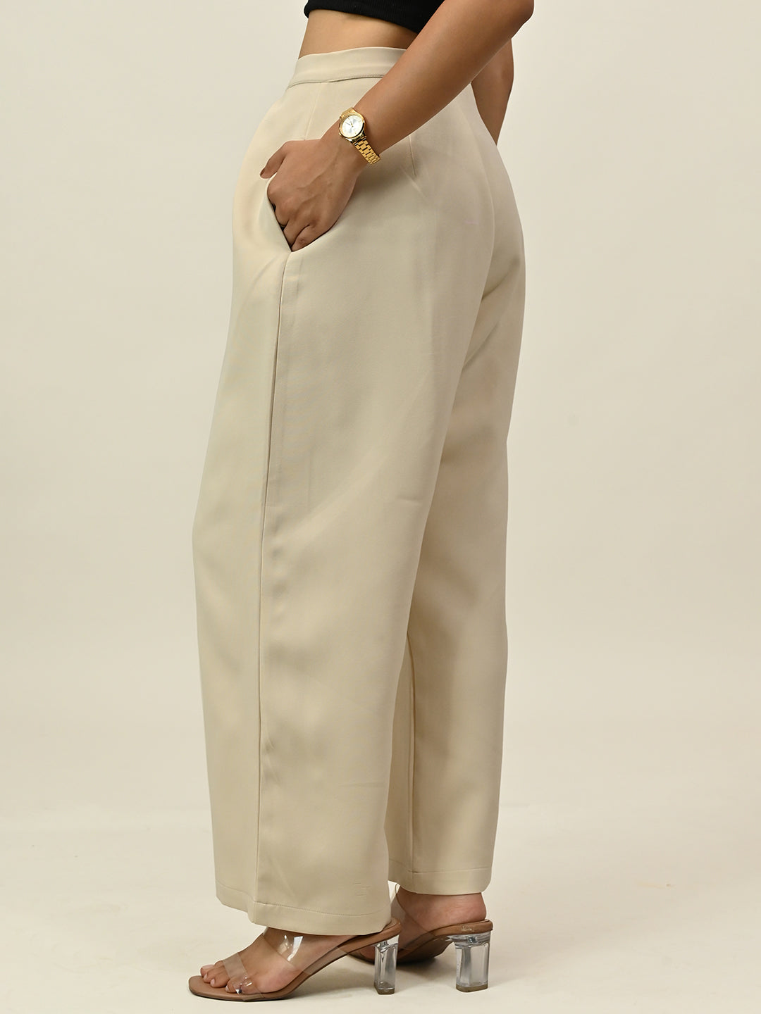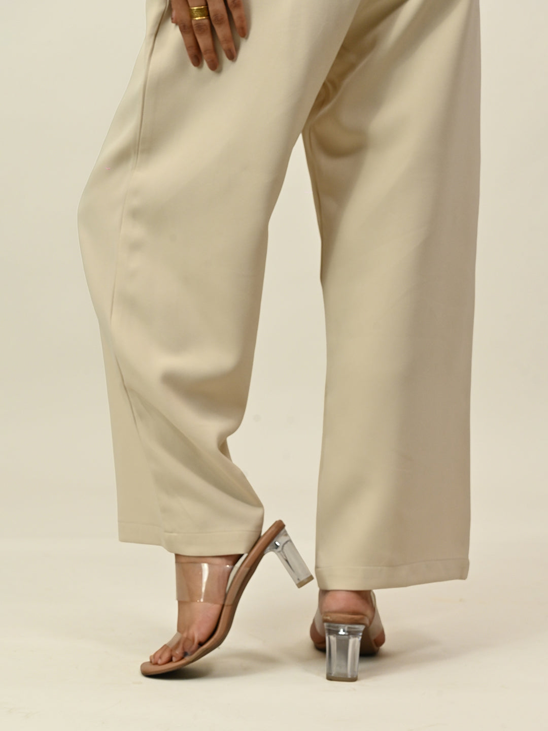 Made from a cotton–lycra blend for breathable comfort and ease. Featuring contrast piping detail for a modern silhouette, these pants are ideal for chic casual outfits, office looks, or day-to-night styling.