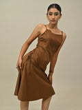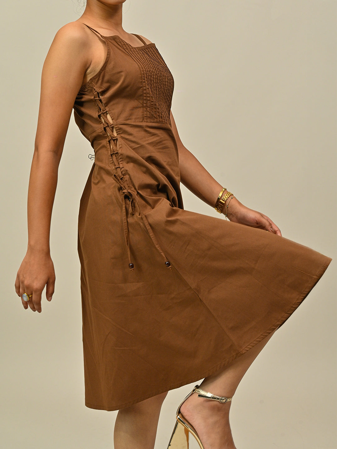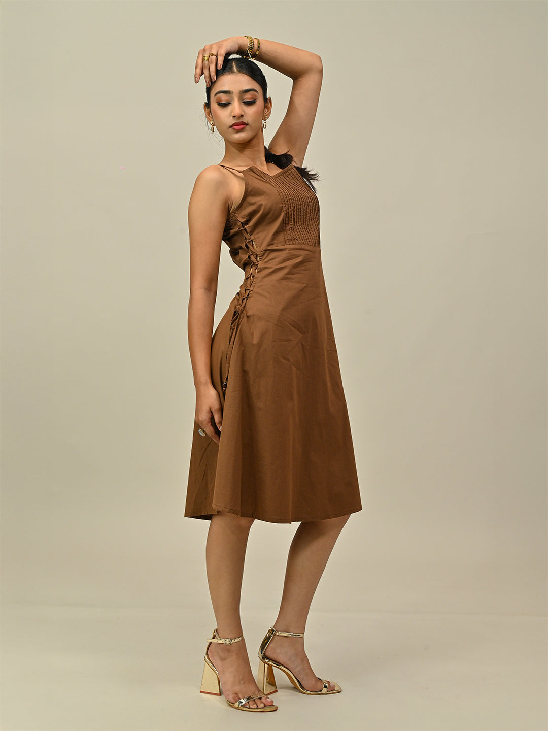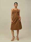 Key Features - Fabric: 100% Cotton - Design: Front pleated midi dress - Lining: None - Care: Machine washable - Color: Brown