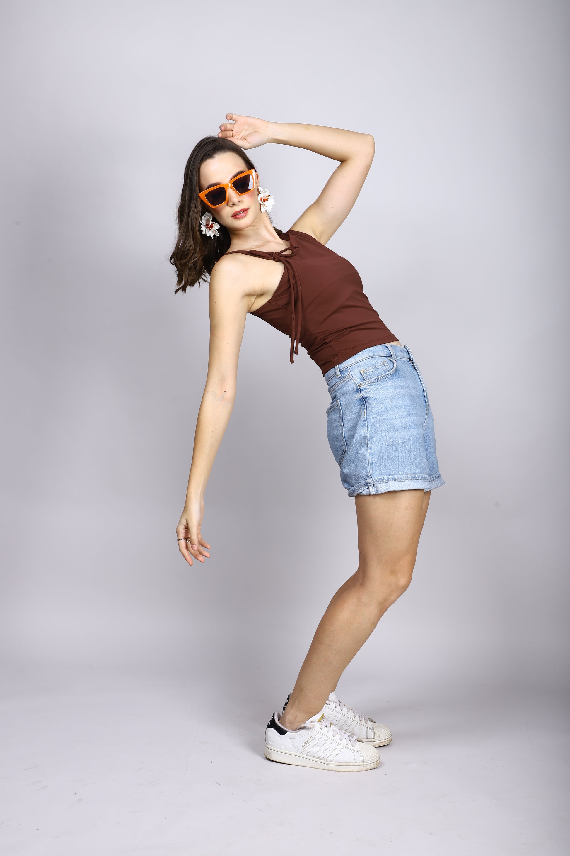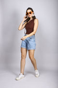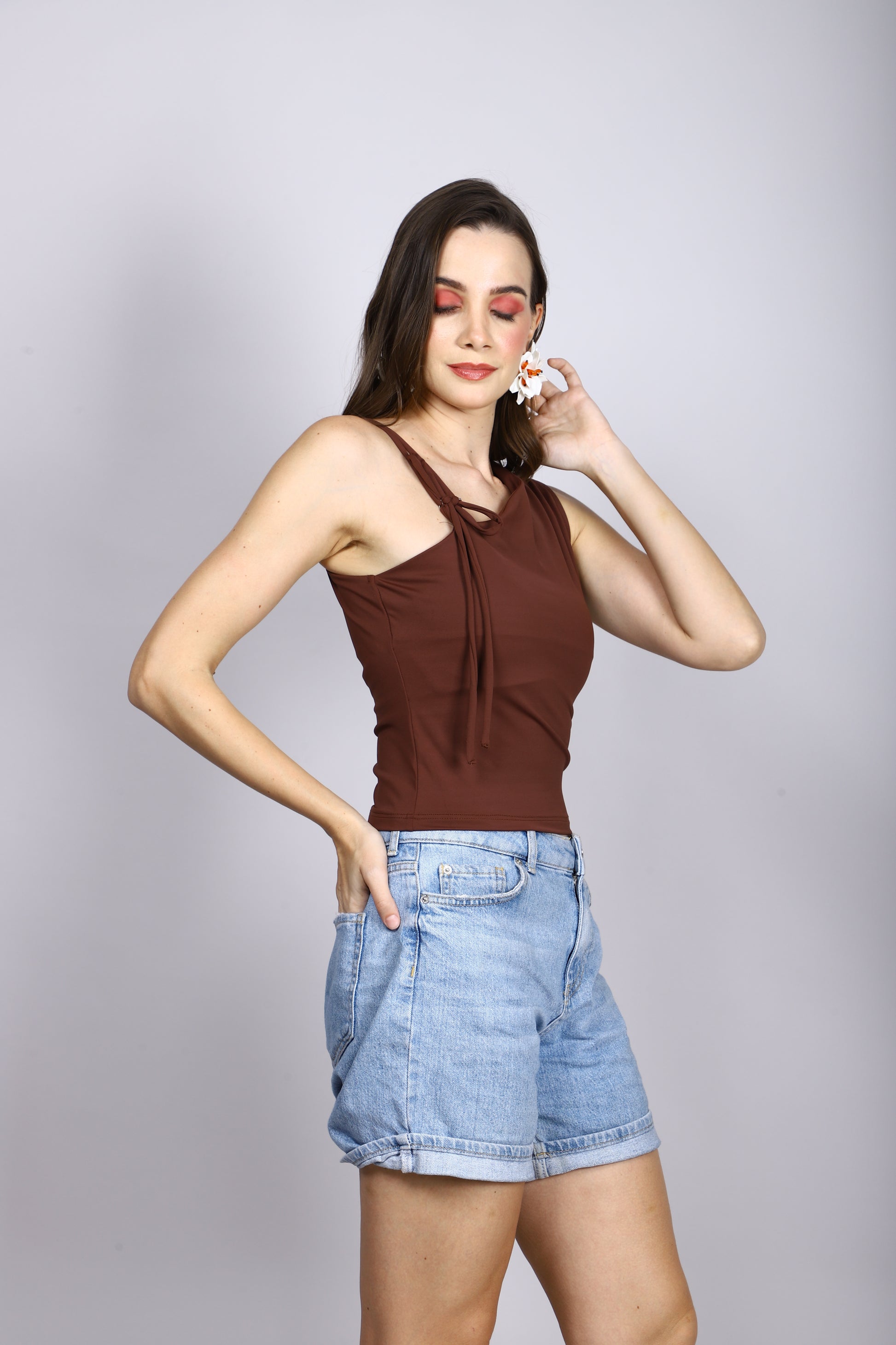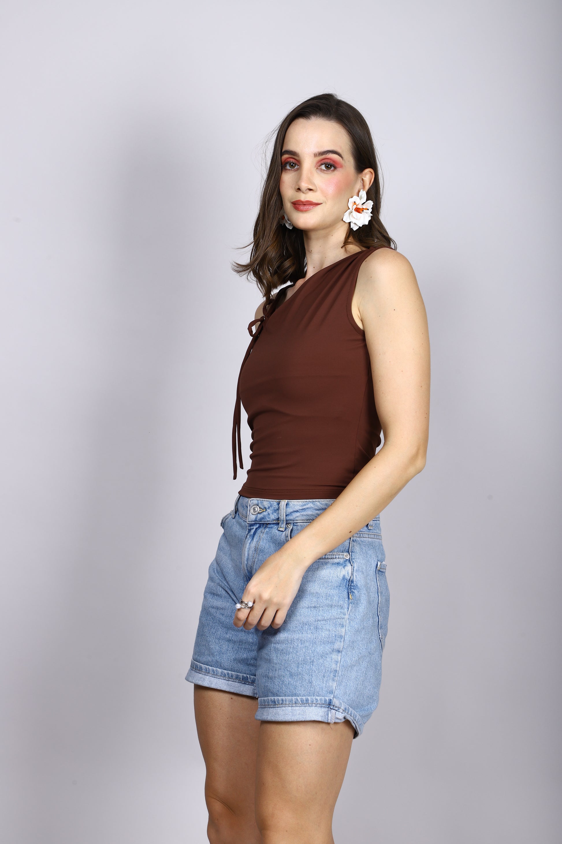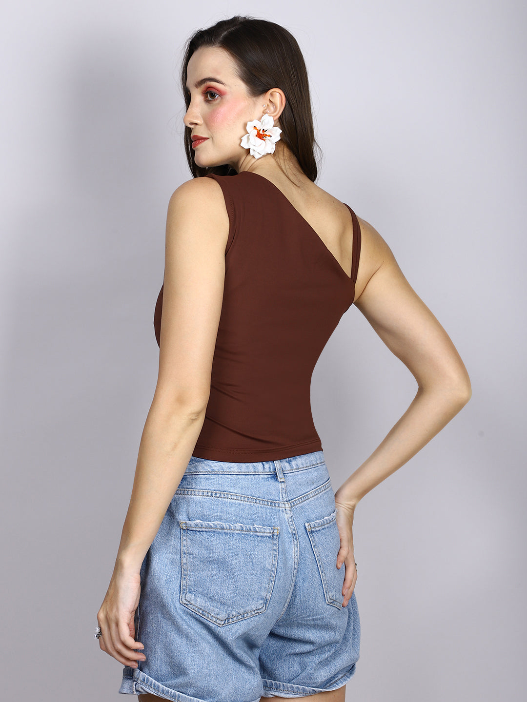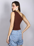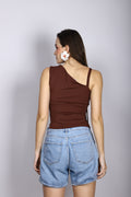 BROWN ONE SHOULDER TIE TOP