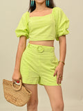 Featuring a beautifully detailed embroidered top with matching shorts. Crafted in 100% cotton with lining, this set is ideal for casual outings, brunches, or summer getaways.