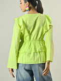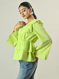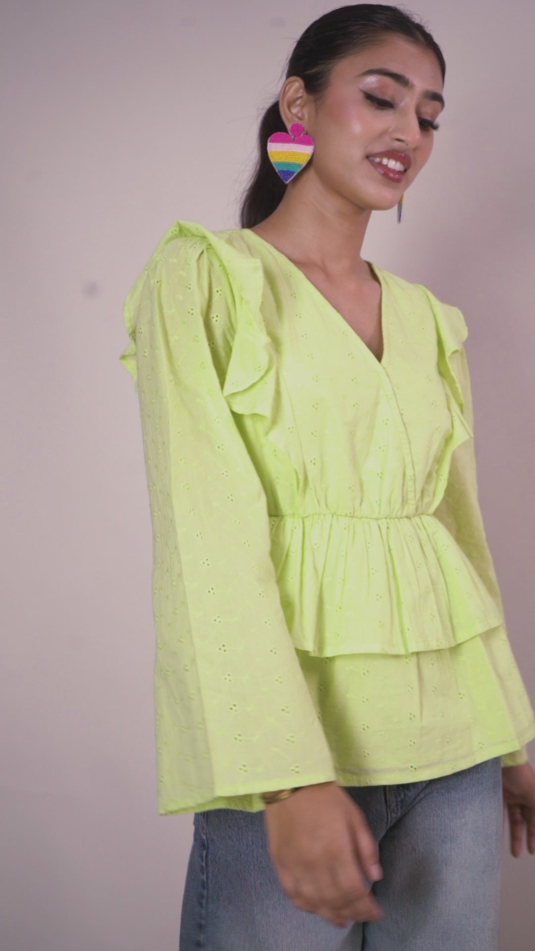 Key Features - Fabric: 100% Cotton - Design: Schiffli embroidery - Fit: Flattering peplum silhouette - Lining: None - Care: Machine washable - Color: Green