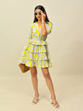 The Grey Printed Frill Dress features playful frill detailing and an all-over print for a chic everyday vibe. Crafted from lightweight 100% polyester, it’s breathable, breezy, and easy to maintain with machine wash care. Designed with no lining, this casual dress is perfect for day outings, brunches, or summer styling.