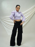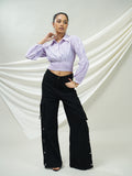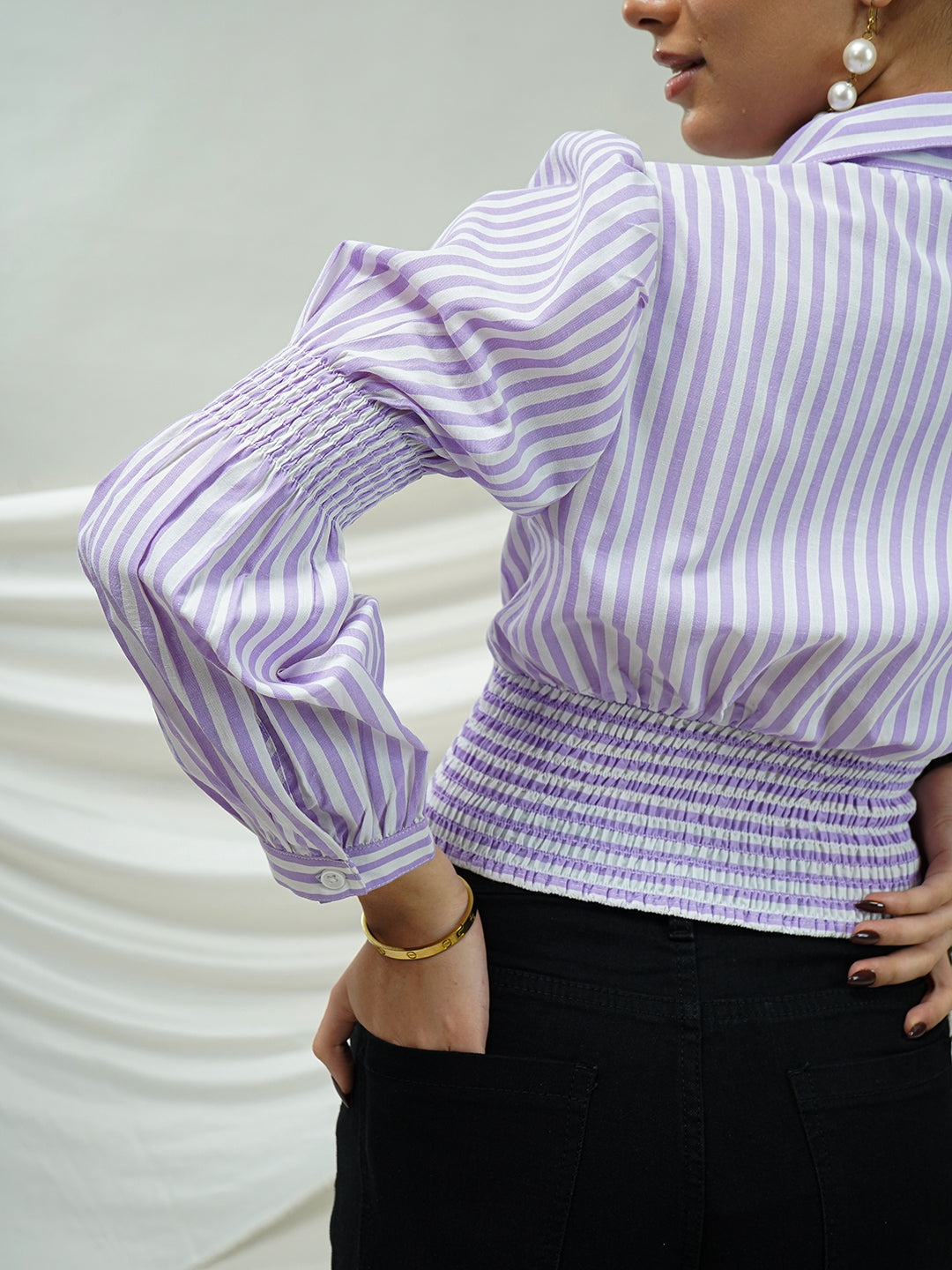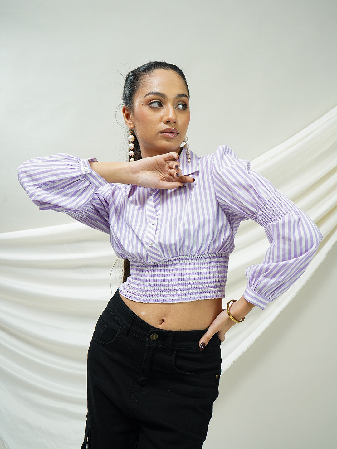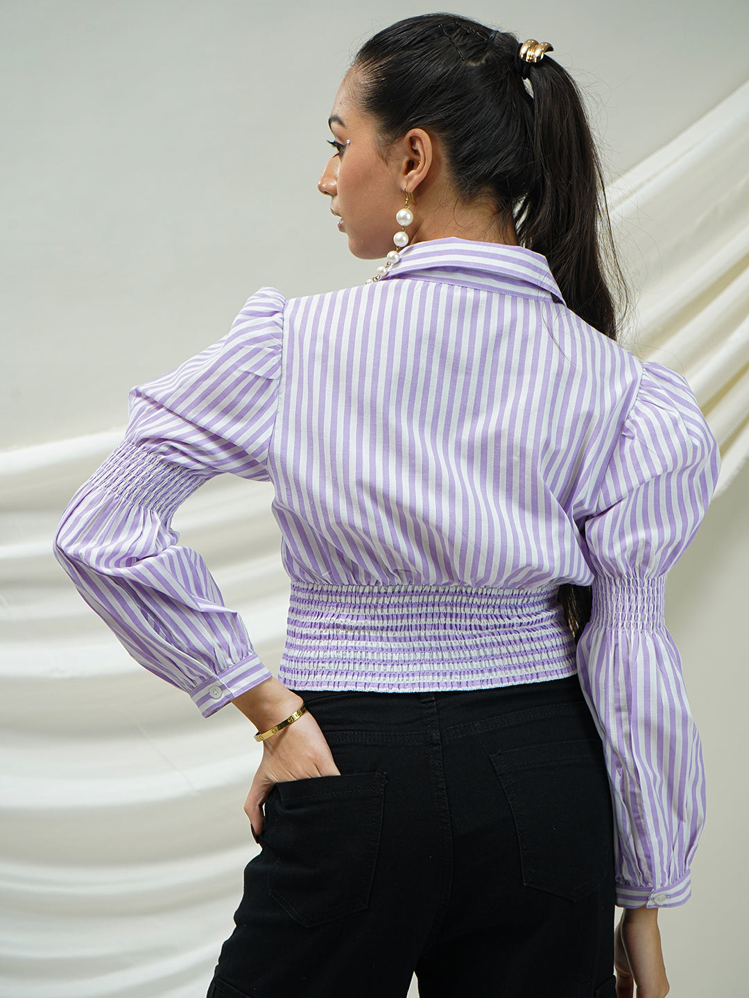 Lavender Striped Smocked Crop Top