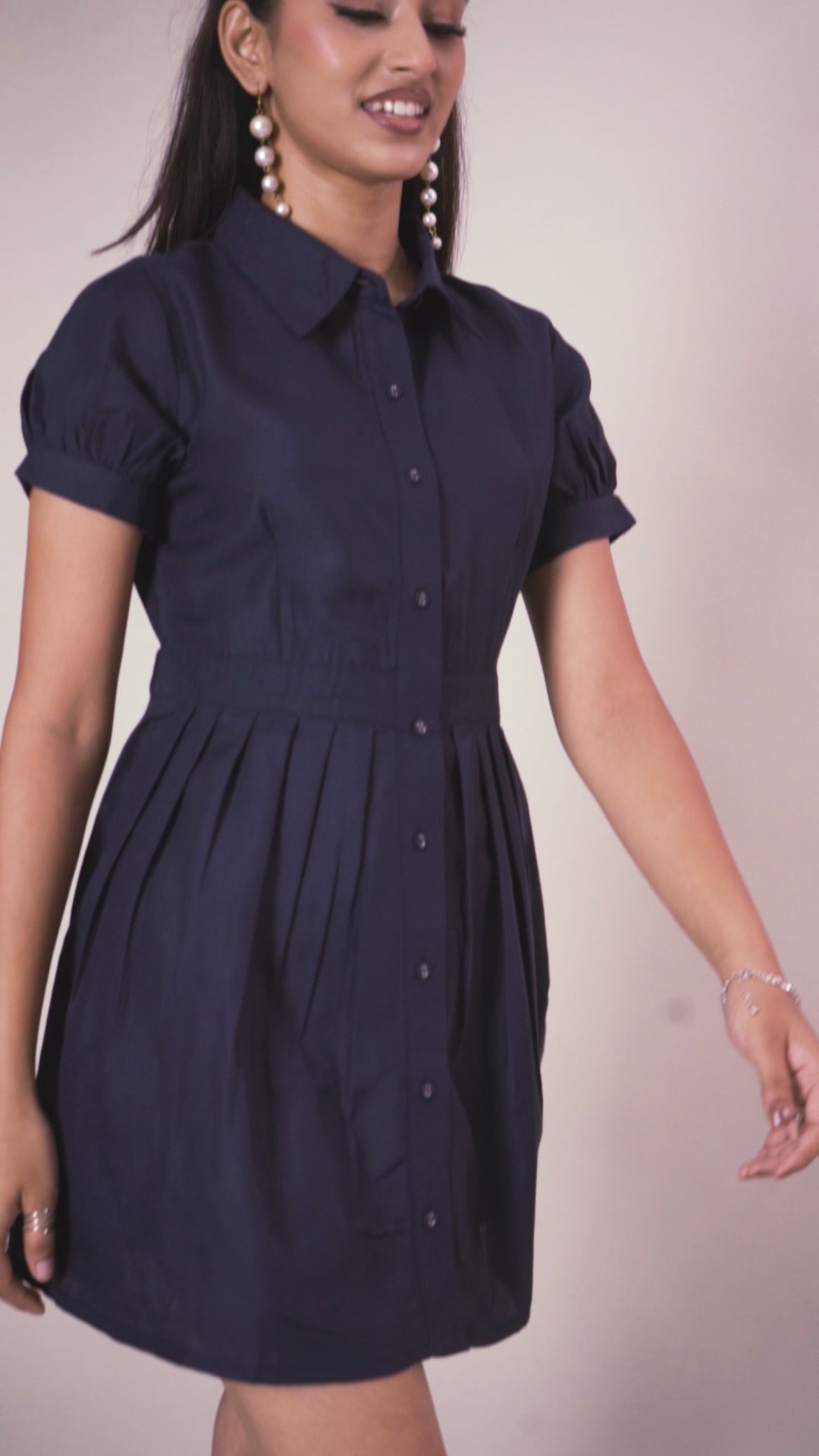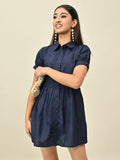 Key Features - Fabric: 100% Cotton - Design: Mini dress with button closure - Fit: Elegant & comfortable - Lining: Yes - Care: Machine washable - Color: Navy Blue