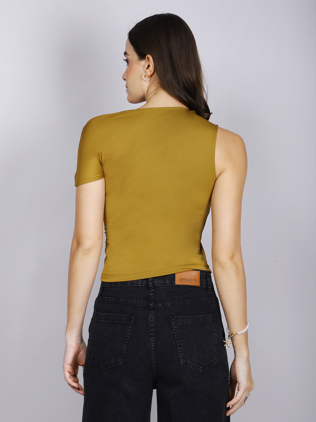 Crafted from a soft cotton-lycra blend for breathable stretch. Featuring side ruched detailing that flatters the silhouette, this top adds a chic twist to everyday outfits. Style with jeans, skirts, or layered looks for casual to dressy wear.