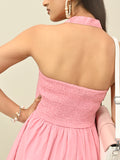 Key Features - Fabric: 100% Cotton - Design: Halter neckline - Lining: None (light & breathable) - Care: Machine washable - Color: Pink