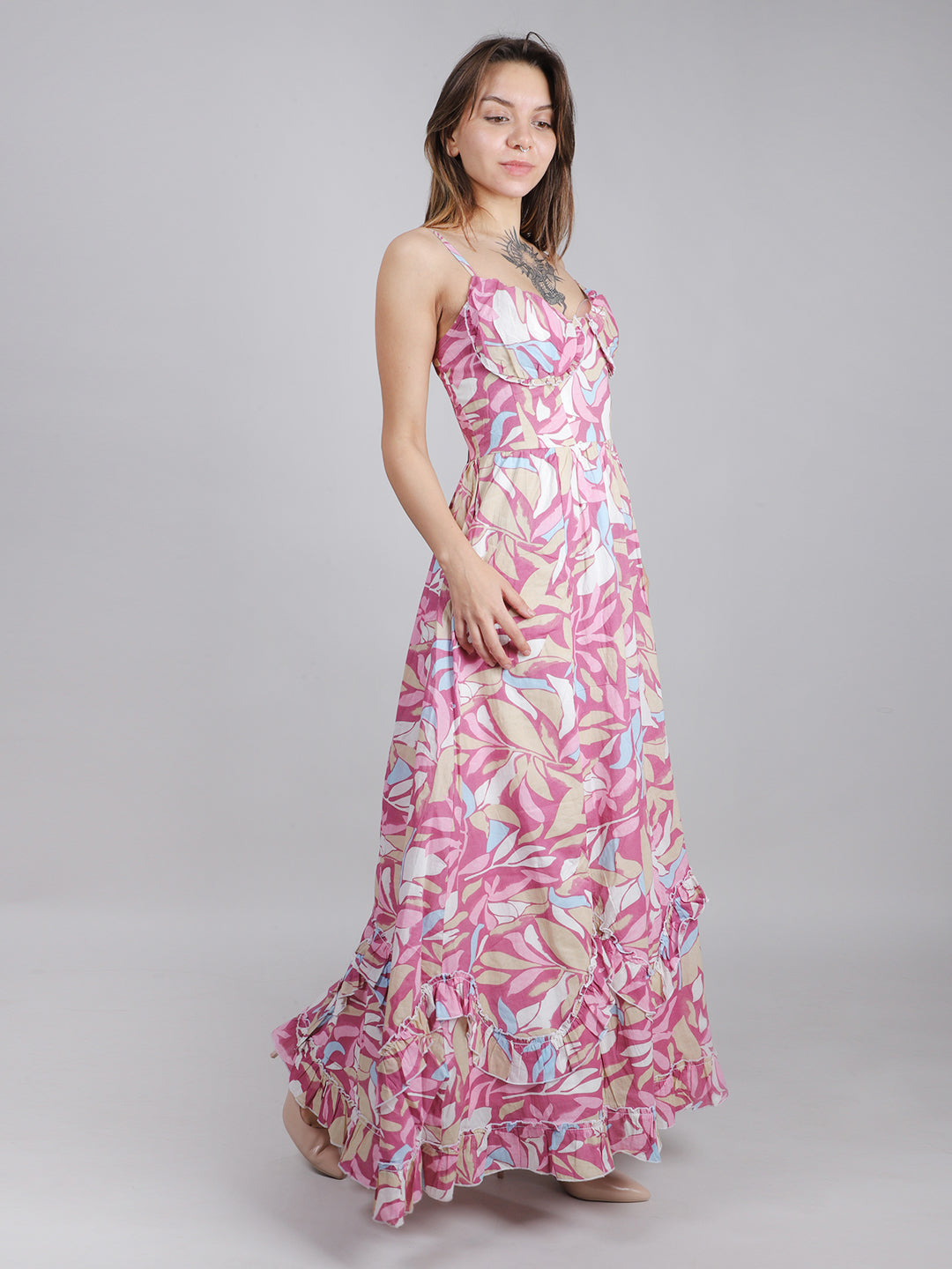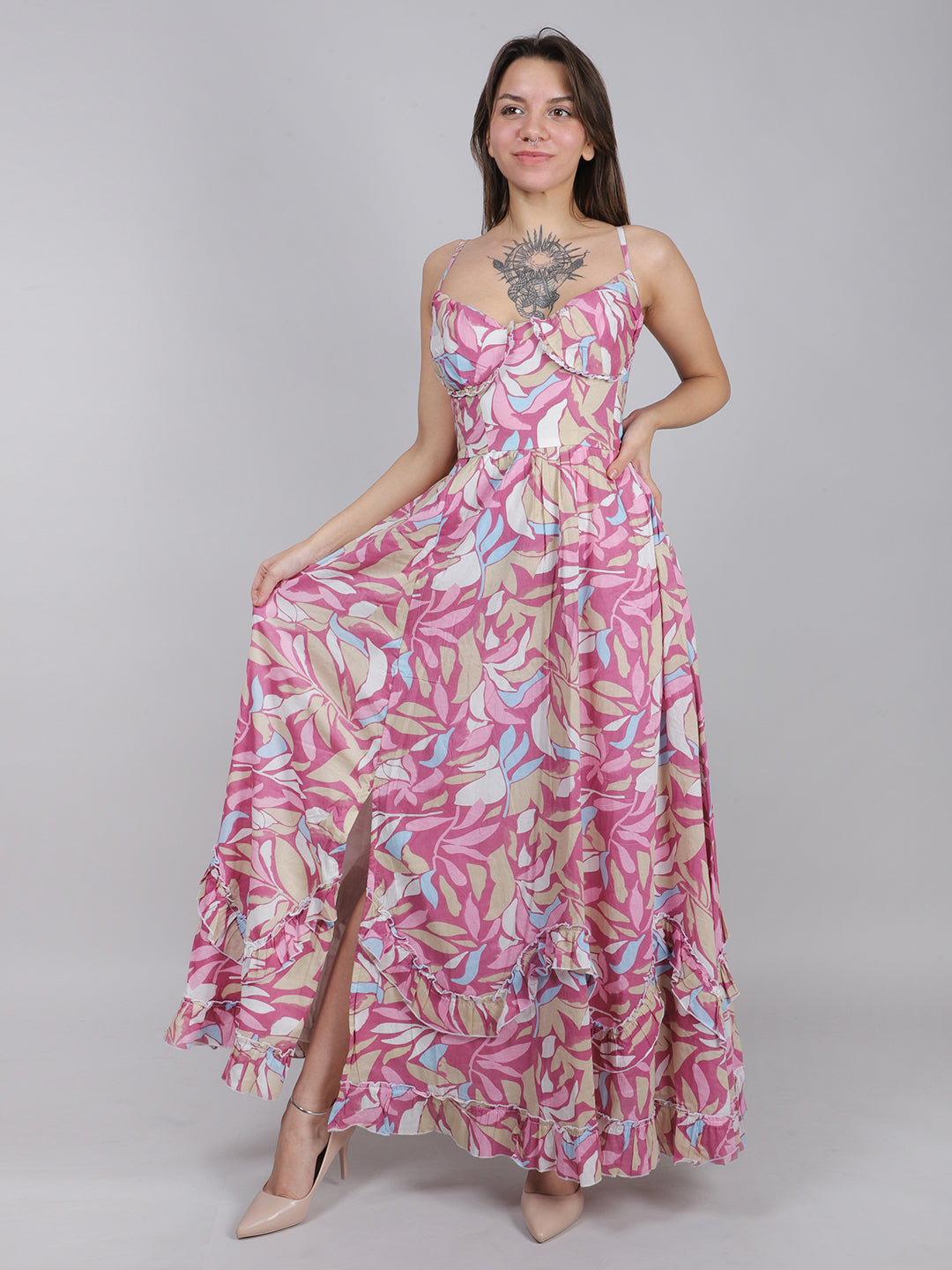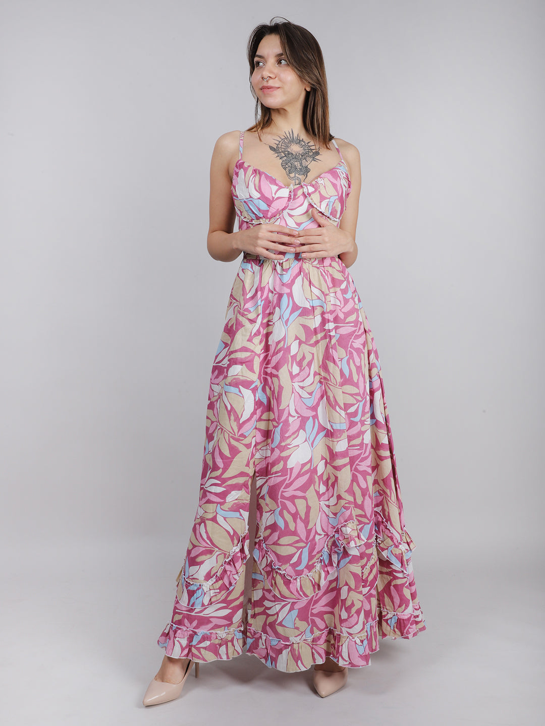 PINK PRINT FLORAL MAXI DRESS