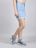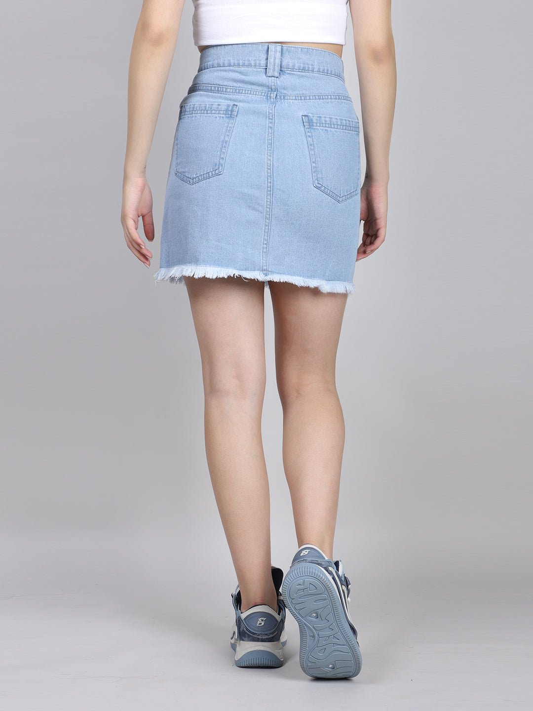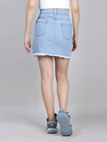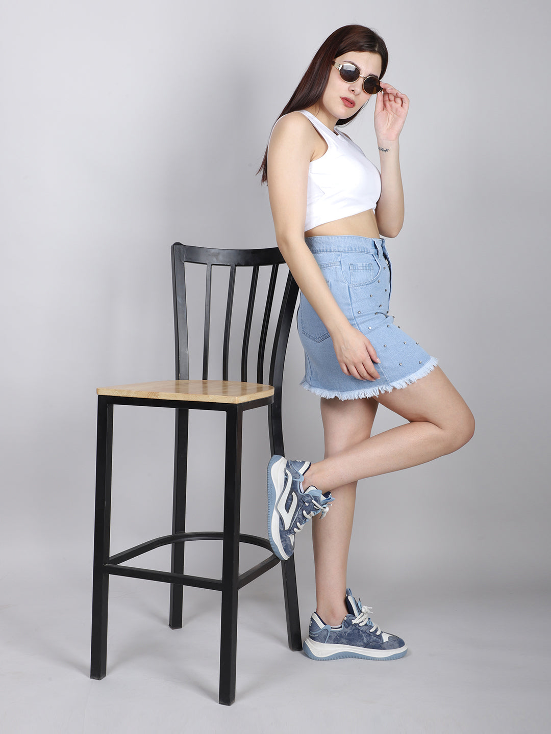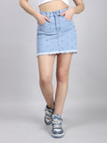 STUDDED RHINESTONE RAW HEM DENIM SKIRT