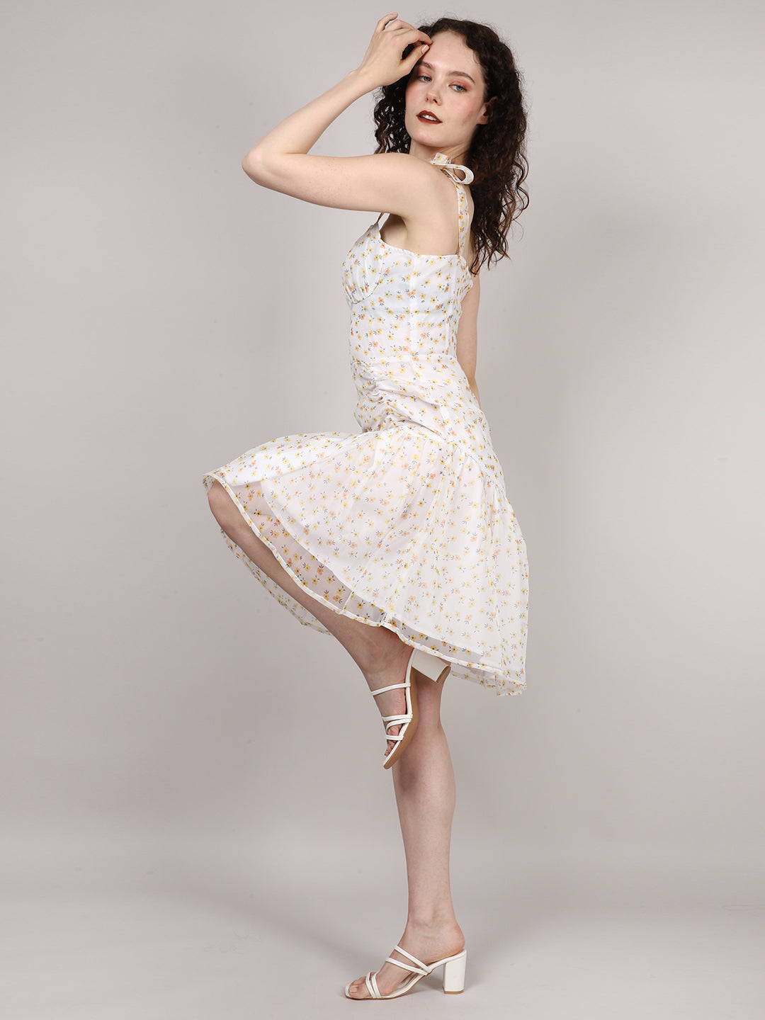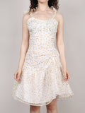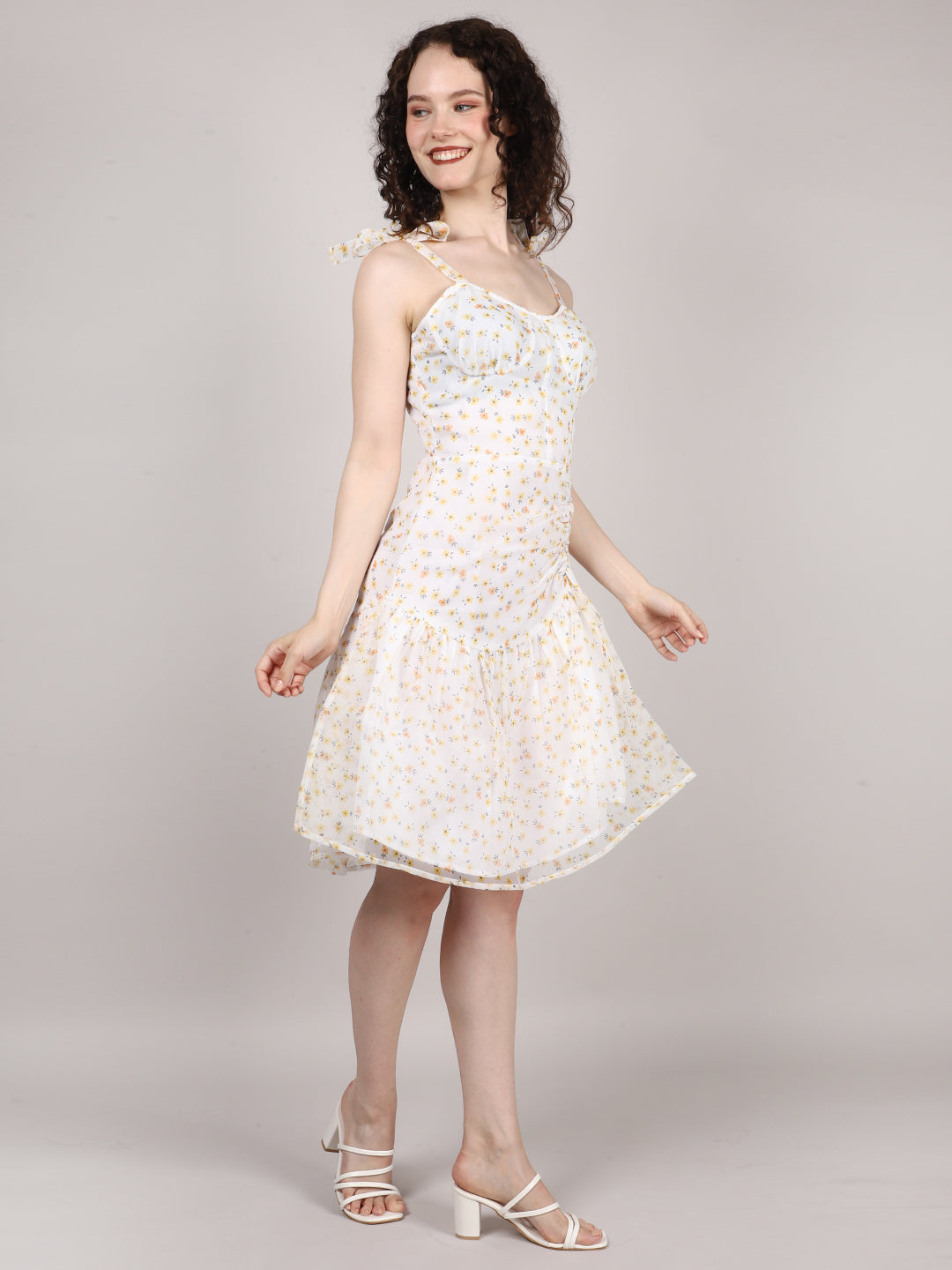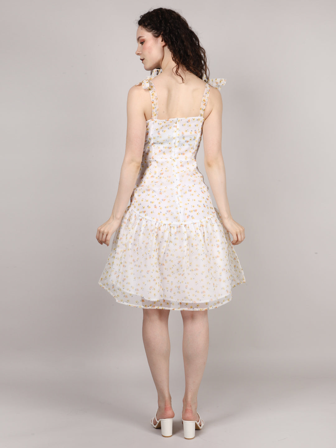 WHITE DITSY PRINT ORGANZA MINI DRESS