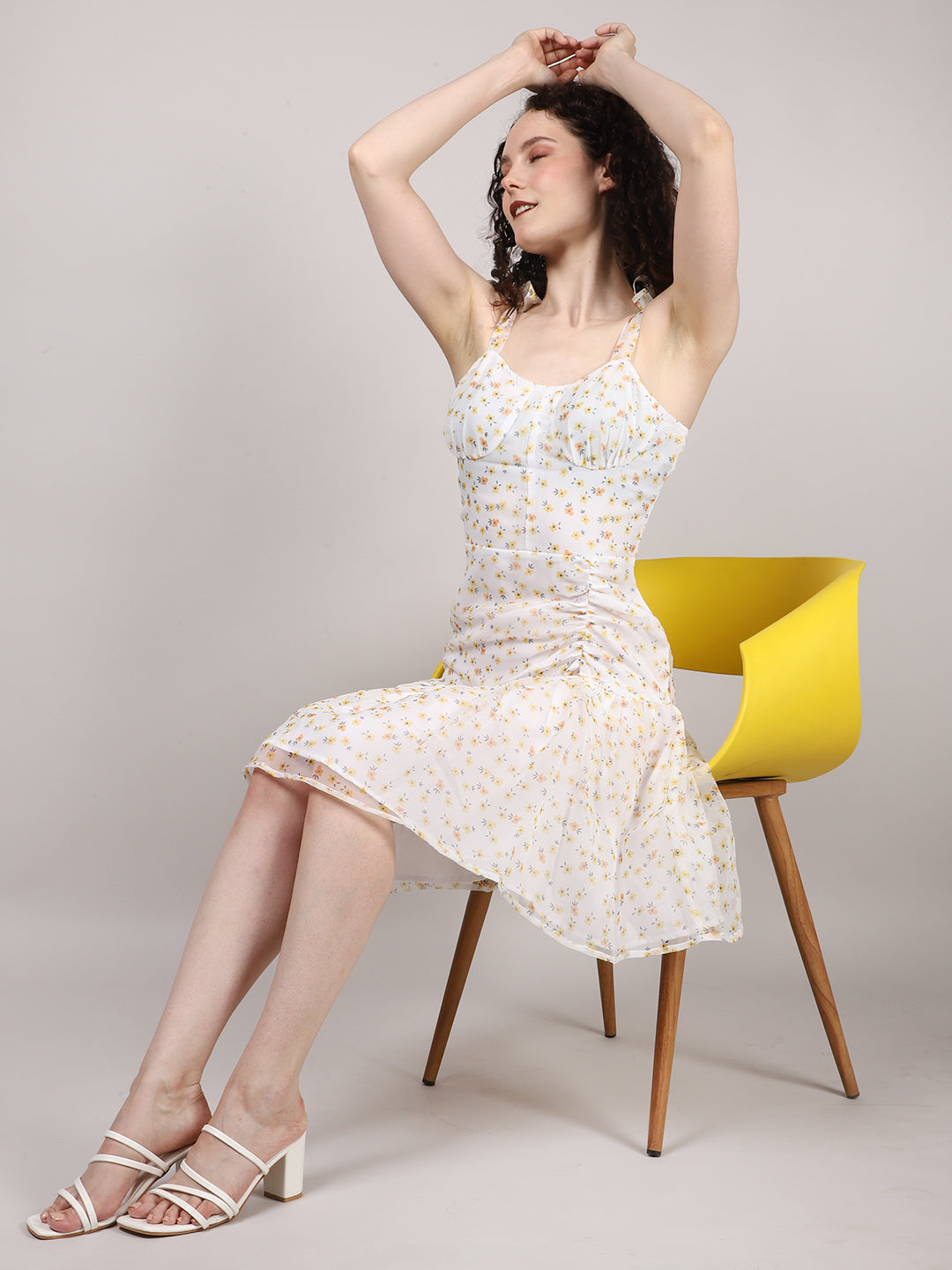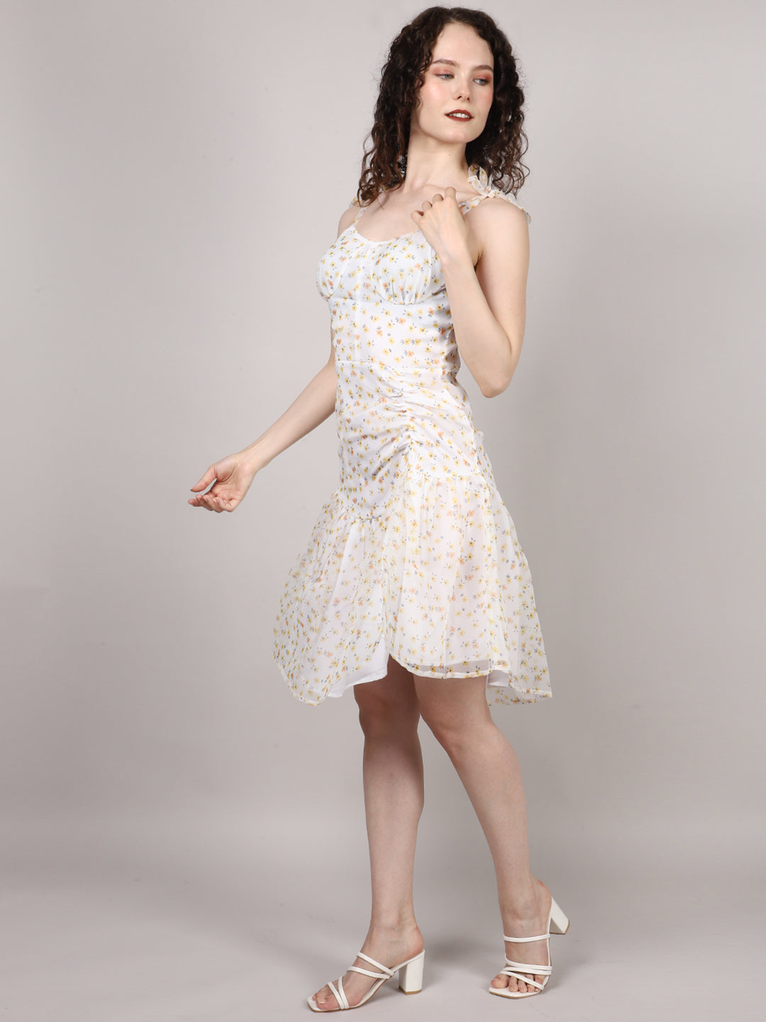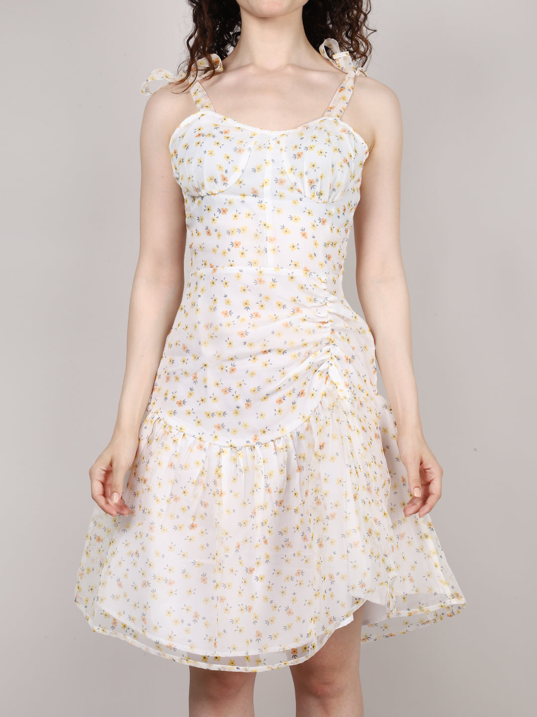 WHITE DITSY PRINT ORGANZA MINI DRESS