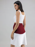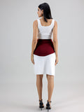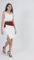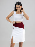 WHITE MAROON SLIT SKIRT