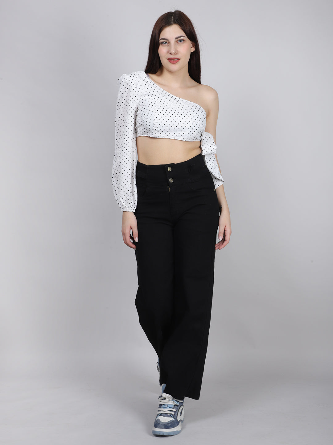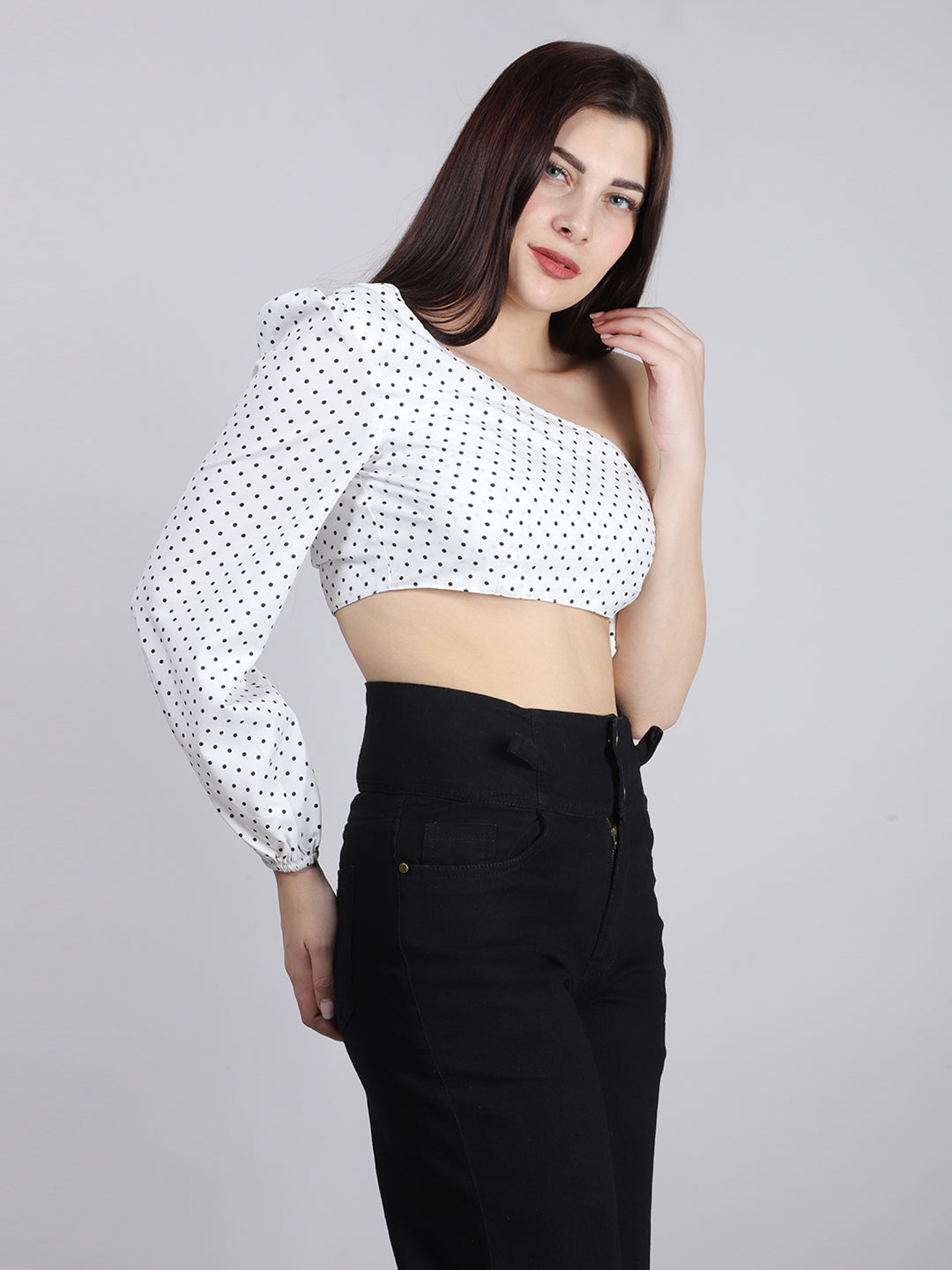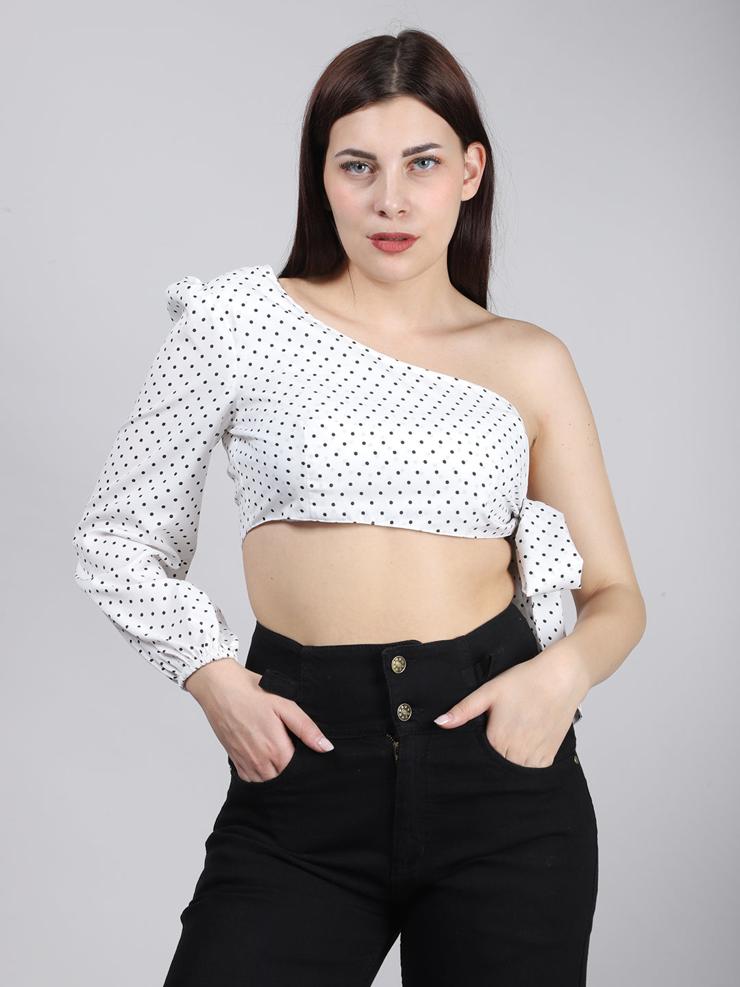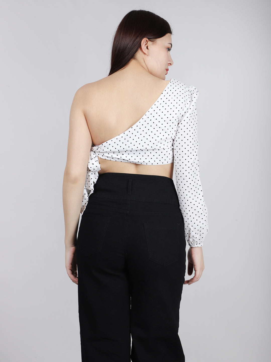 WHITE ONE SHOULDER SIDE KNOT TOP