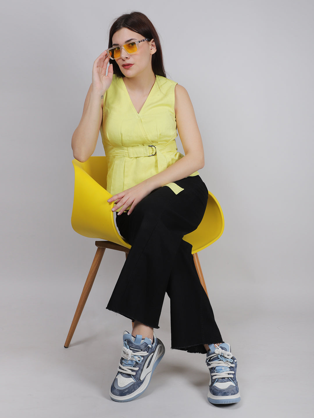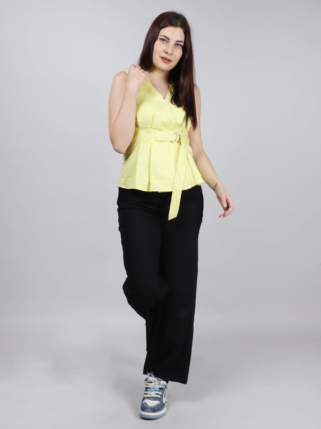 YELLOW BUCKEL PEPLUM TOP