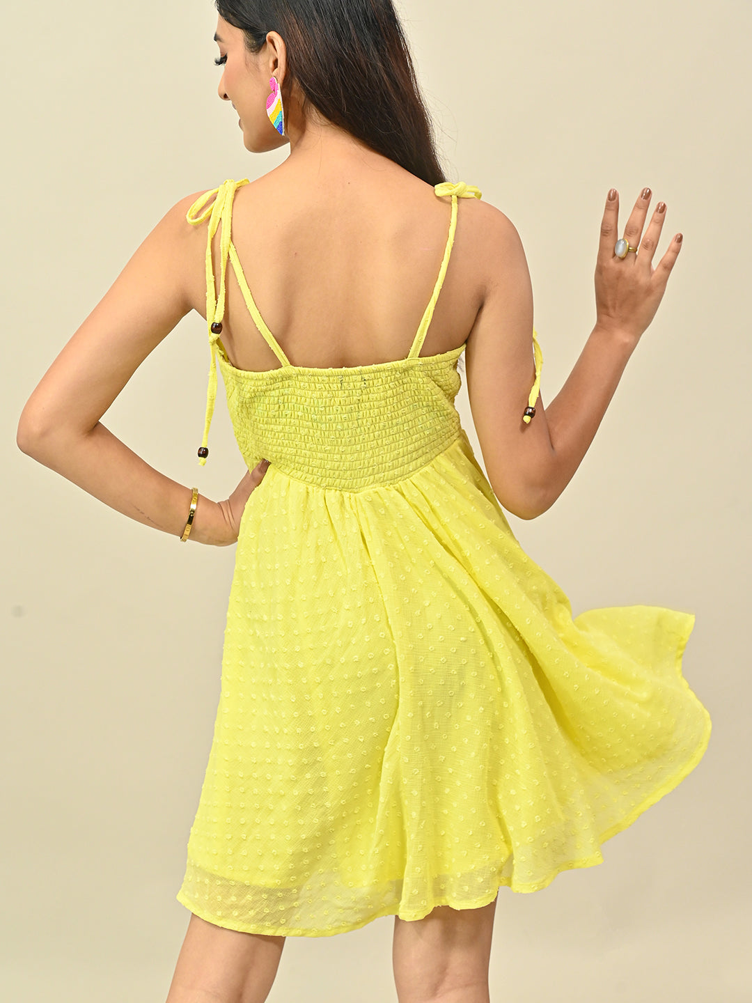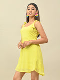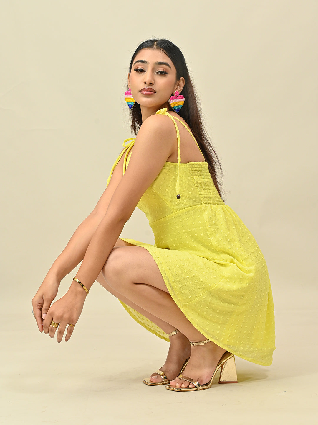 Key Features - Fabric: 100% Cotton - Design: Strappy dress with textured dobby finish - Lining: Yes (comfortable & breathable) - Care: Machine washable - Color: Yellow